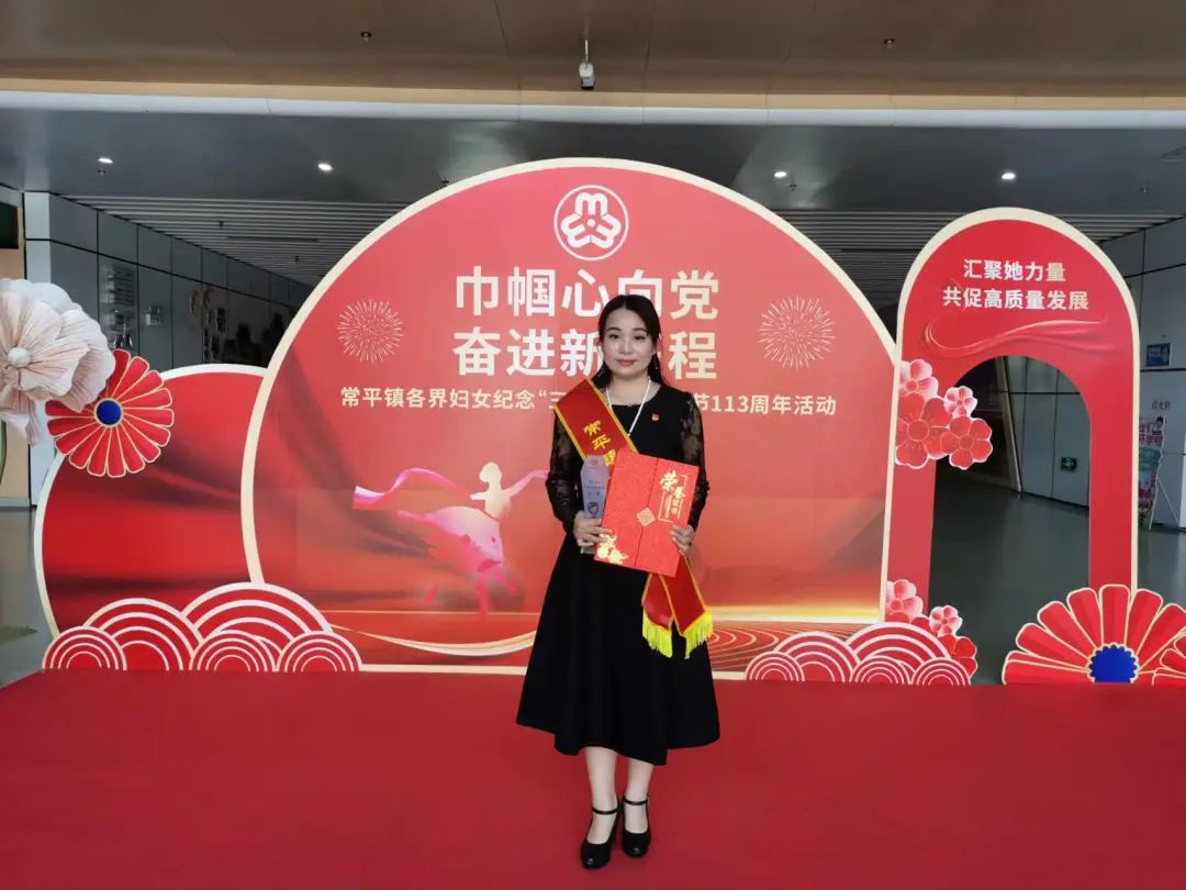东莞市南二社会工作服务中心理事长梁小素荣获2023年度常平镇”最美女性”奖。