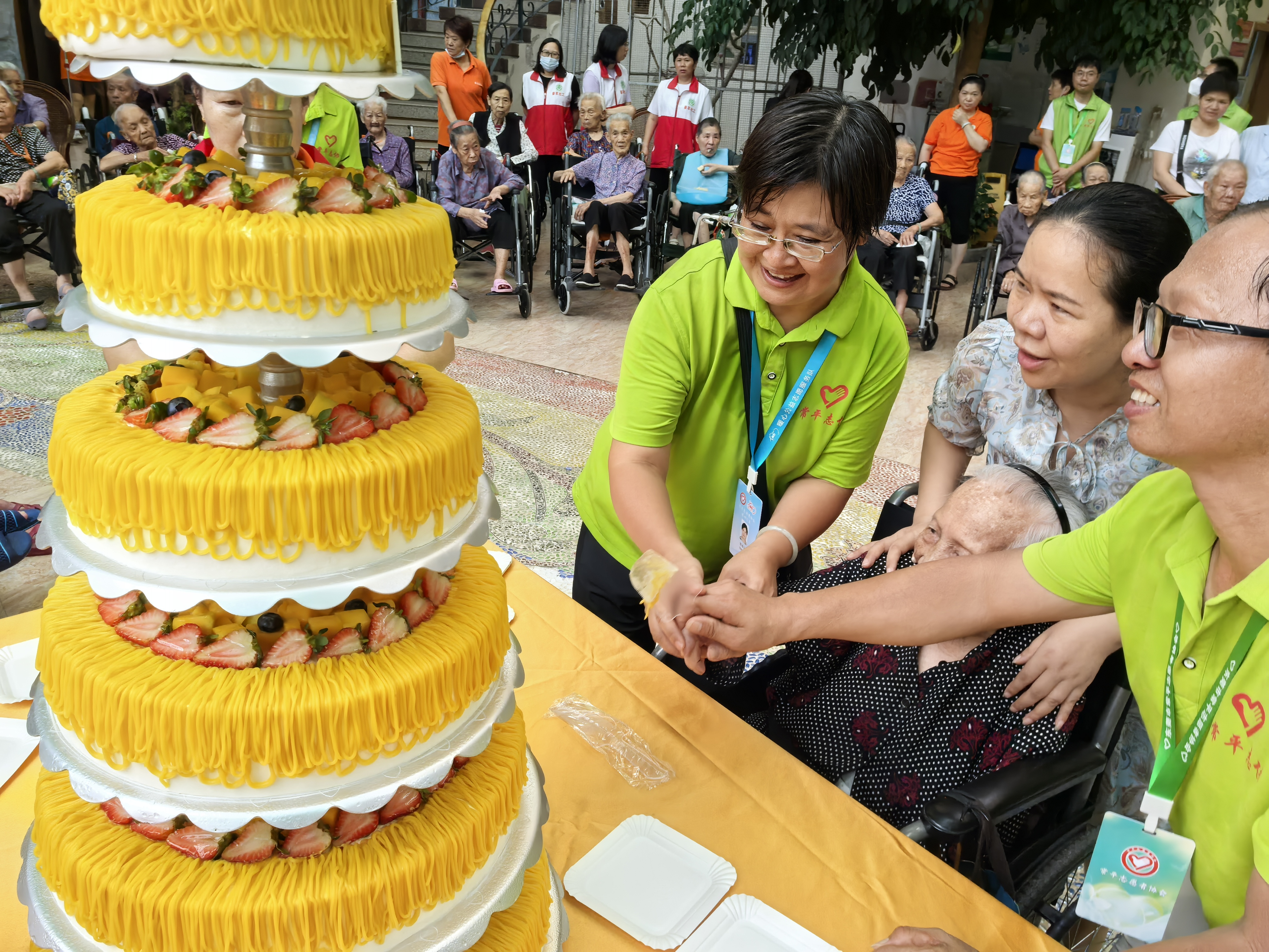 才艺表演结束后,伴随着温馨的生日快乐歌声,现场人员与本季度过生日的长者们,共同分享象征甜蜜与祝福的生日蛋糕,将现场气氛推向高潮,长者们脸上洋溢着幸福的笑容。